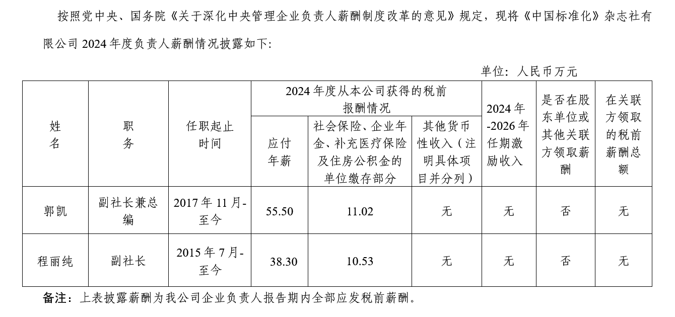 《中國(guó)標(biāo)準(zhǔn)化》雜志社有限公司企業(yè)負(fù)責(zé)人2024年度薪酬情況