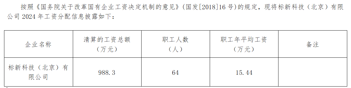 2024年標(biāo)新科技(北京)有限公司工資分配信息披露