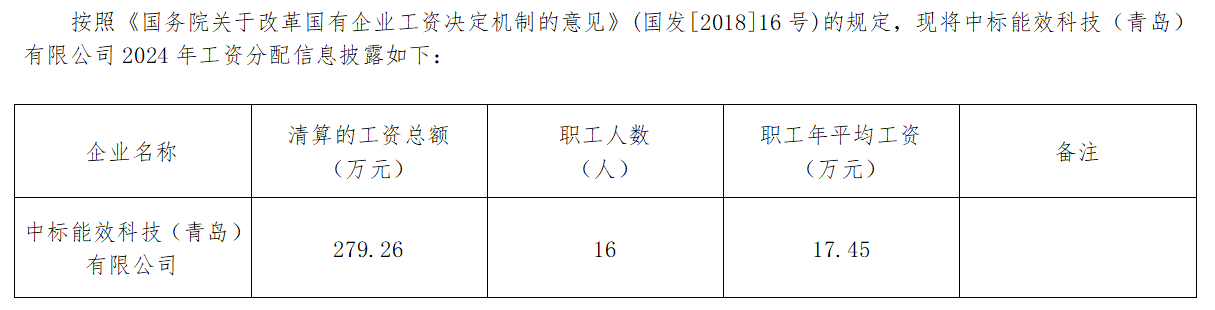 2024年中標(biāo)能效科技(青島)有限公司工資分配信息披露