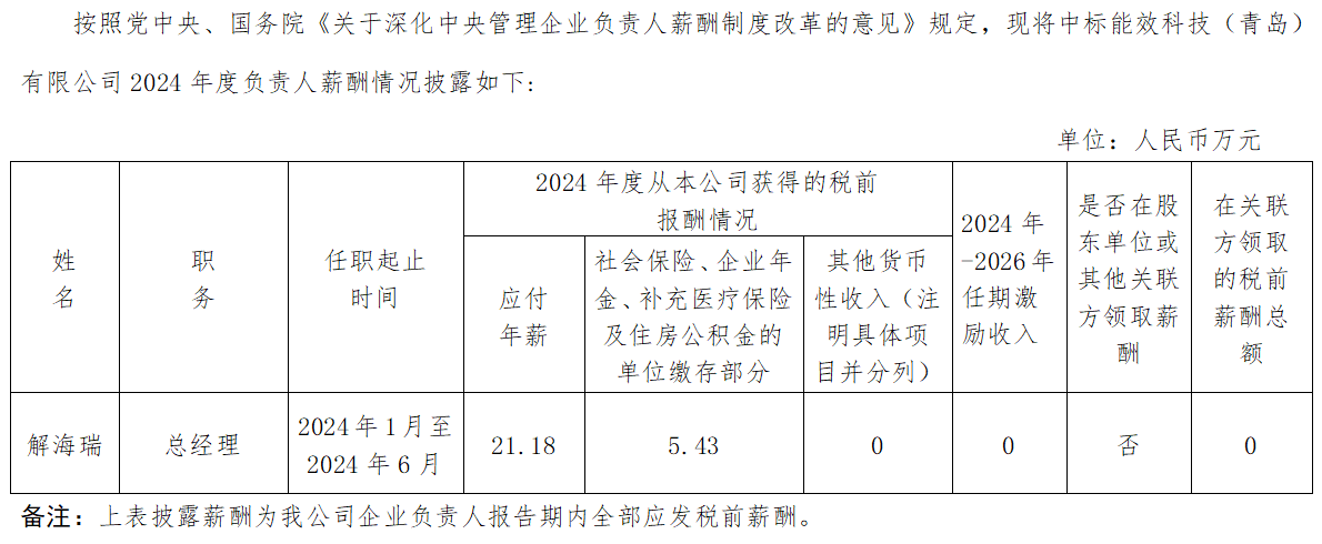 中標(biāo)能效科技(青島)有限公司企業(yè)負(fù)責(zé)人2024年度薪酬情況