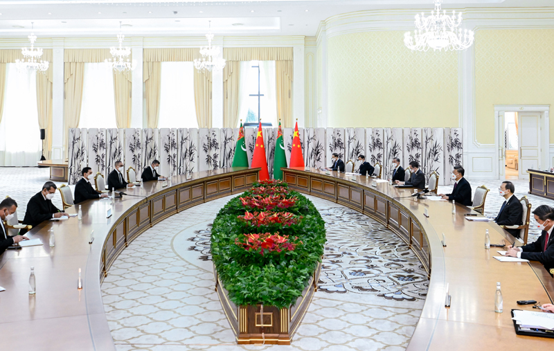 習(xí)近平強(qiáng)調(diào),雙方要做大兩國(guó)天然氣合作的體量和規(guī)模,為兩國(guó)發(fā)展振興注入新動(dòng)力。要加快推進(jìn)非資源領(lǐng)域合作,推進(jìn)共建“一帶一路”倡議同土方“復(fù)興絲綢之路”戰(zhàn)略對(duì)接。盡早落實(shí)互設(shè)文化中心,為兩國(guó)人文交流搭建新平臺(tái)。中方愿早日在土庫(kù)曼斯坦設(shè)立魯班工坊,同土方繼續(xù)加強(qiáng)抗疫合作。中方愿同土方加強(qiáng)“中國(guó)+中亞五國(guó)”會(huì)晤機(jī)制內(nèi)合作,落實(shí)全球發(fā)展倡議和全球安全倡議,密切國(guó)際協(xié)作,維護(hù)廣大發(fā)展中國(guó)家共同利益,為促進(jìn)世界和平與發(fā)展作出貢獻(xiàn)。