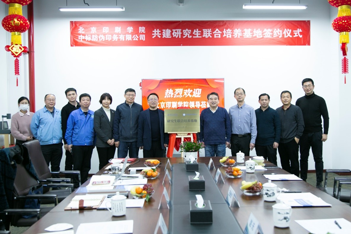 2023年1月11日,北京印刷學(xué)院王關(guān)義副校長一行六人、中標(biāo)集團總經(jīng)理王賡赴中標(biāo)防偽參加“北京印刷學(xué)院與中標(biāo)防偽共建研究生聯(lián)合培養(yǎng)基地”簽約及揭牌儀式,北京印刷學(xué)院特別聘請劉祥、李艷君擔(dān)任北印研究生校外導(dǎo)師。