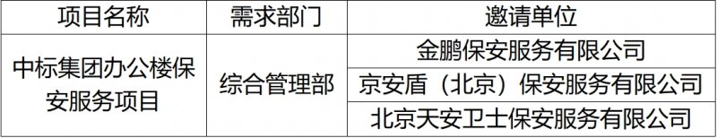 按照《中國(guó)標(biāo)準(zhǔn)科技集團(tuán)有限公司采購(gòu)工作管理辦法(試行)》要求,現(xiàn)對(duì)中標(biāo)集團(tuán)辦公樓保安服務(wù)項(xiàng)目競(jìng)爭(zhēng)性談判邀請(qǐng)單位公示。