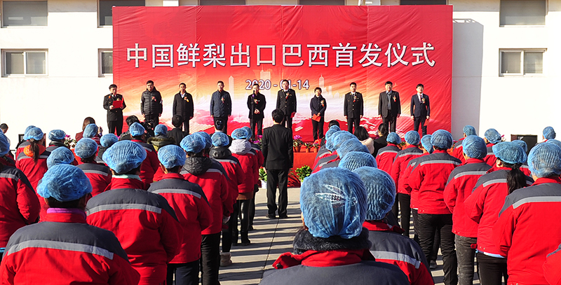 2020年1月14日,中國(guó)鮮梨出口巴西首發(fā)儀式在河北滄州泊頭舉行。新華社記者 牟宇 攝