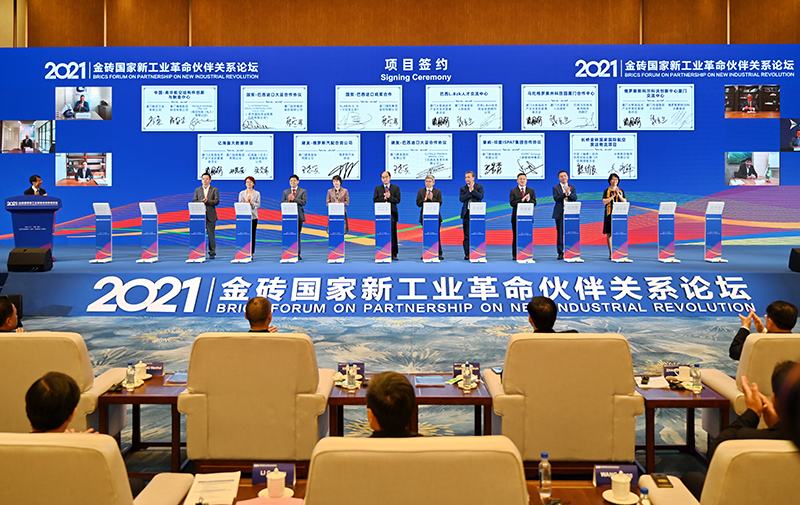 2021年9月7日,金磚國(guó)家新工業(yè)革命伙伴關(guān)系創(chuàng)新基地在廈門舉行簽約儀式。新華社記者 林善傳 攝