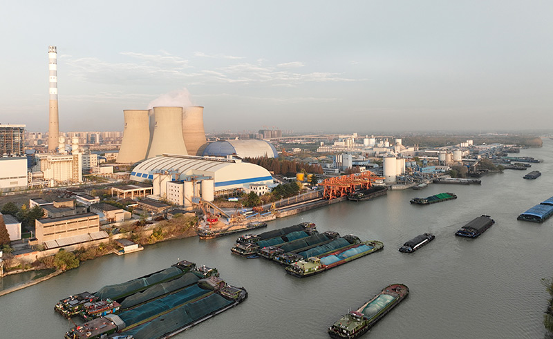 11月28日,運輸電煤的船舶經(jīng)過京杭大運河揚州段(無人機(jī)照片)。