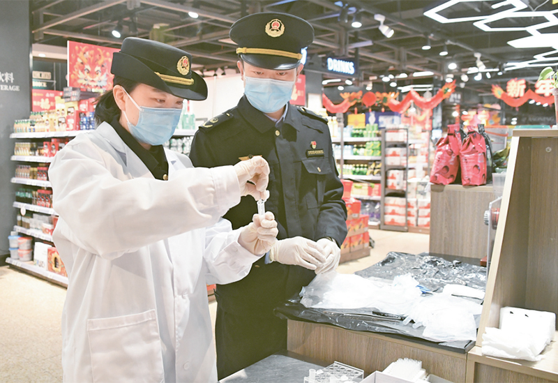 中國(guó)式現(xiàn)代化,民生為大。市場(chǎng)監(jiān)管領(lǐng)域必須強(qiáng)化以人民為中心的發(fā)展思想,守牢安全底線(xiàn),切實(shí)保障人民群眾生命財(cái)產(chǎn)安全。圖為2024年2月20日,北京市海淀區(qū)市場(chǎng)監(jiān)督管理局工作人員對(duì)一家超市的在售元宵進(jìn)行快檢。 新華社記者 任超/攝